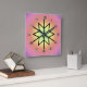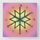 Star in black has the ends of its points on metallic looking numerque. Background is a diffused rainbow circle blending from green in center to purple at the edges.