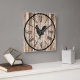 Rustique Barnwood-Look Farmhouse Design Horloge murale avec silhouette de coq noir. NOTE : Ce n'est pas du bois d'écorce réel, mais une photo simulée.