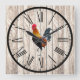 Écran rustique en bois d'écorce Farmhouse Design Horloge murale avec Rooster en Strutting Coloré. NOTE : Ce n'est pas du bois d'écorce réel, mais une photo simulée.