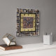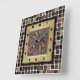 10.75" x 10.75" acrylic wall clock with image of copper glass tiles and a square gold clock face with embossed copper tile insinsist.