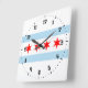 Horloge murale avec drapeau de la ville de Chicago (plus grande ville de l'Illinois), drapeau rayé blanc et bleu clair avec quatre étoiles rouges