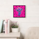 Une pose drôle d'une girafe mignonne - en sortant sa langue, dans des couleurs néon funky de rose et bleu. a une ambiance pop art des années soixante rétro.