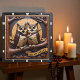 Horloge Carrée Engraved Owls Branch Banner Brown