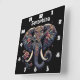 Une tête d'éléphant ornée présente des motifs floraux complexes, avec un mélange fascinant de couleurs et de motifs. La représentation artistique capture la beauté et la grâce de cette créature majestueuse.