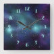 Horloge Carrée Étoiles dans l'espace bleu violet vert Nebula