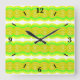 Horloge murale carré, décoration murale et décoration d'ameublement accessoire imprimé avec Green And Yellow Figure Eight Ribbon Motif rétro pop art ruban style bonbon design géométrique abstrait motif d'illustration originale par TheFabricSeal impression sur demande shop à Zazzle.com #ZazzleMade https://www.zazzle.com/store/thefabricseal TheFabricSeal ©️ Original. Cette horloge murale unique et de haute qualité est imprimée sur mesure avec un procédé AcryliPrint®HD et dispose d'un emplacement de pendage arrière préinstallé pour une pendaison facile et une conception non-tique. Art graphique numérique moderne et géométrique abstrait dessiné et imprimé artistiquement pour votre maison et accessoires de vie, décoration de maison, défilé de mode, accessoires électroniques modernes et tons de cadeaux donnant des idées. Ce dessin amusant et gai a été inspiré par l'aspect de bonbons durs ruban classique gâteries populaires pendant des siècles et des générations. Représentation de la nature à son point le plus frais du renouvellement de la verdure du printemps et de l'été. Belle palette de couleurs mélangée avec des verts et des jaunes, y compris le jaune citron, le beurre jaune crémeux, la limonade, la limeade, l'herbe citron, vert néon foncé, vert clair, vert électrique, chartreuse, tarte à la citron, soupe de pois fendu, guacamole, citron, gecko et vert algues, le tout recouvert d'un arrière - plan blanc cool.