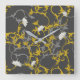 Horloge Carrée Floral gris de moutarde