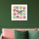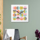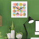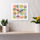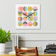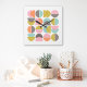 Cette horloge présente un design moderne du milieu du siècle avec des formes géométriques abstraites colorées.