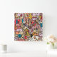 Horloge Carrée Fun Cartoon Main Drawn Toss Pattern