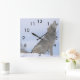 A beautiful grey wolf in a winter scene howling in the wind on this wonderful wall clock. Pick either the square or round style.