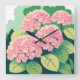 Horloge Carrée Hydrangée rose Floral Botanique