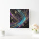Horloge Carrée Lignes brillantes noires Conception abstraite Bleu