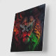 Cette oeuvre d’art saisissante présente un visage de lion majestueux, rendu dans des couleurs vives qui se fondent harmonieusement dans sa crinière. La crinière du lion est dépeinte avec des rouges, des oranges et des verts enflammés, créant un effet visuel fascinant et dynamique. L’arrière - plan foncé contraste fortement avec les couleurs vives, ce qui distingue le regard intense du lion et sa fourrure détaillée. Cette pièce capture la puissance et la beauté du lion, symbolisant la force et le courage.