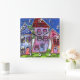 Horloge Carrée Maisons colorées funky