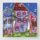 Art de Marta Harvey. Cette pièce a été créée comme un collage de papiers peints (courrier indésirable), assemblés pour former ces petites maisons funky. Une fois assemblés, les fenêtres et d'autres détails ont été ajoutés pour finir la pièce.