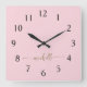 Horloge carrée personnalisée avec monogramme minimaliste rose pastel et nom en écriture dorée. Ces créations présentent votre prénom dans un joli style manuscrit avec une typographie à empattements en couleur or sur un fond rose pastel ou rose blush clair. Très facile à personnaliser. Cadeau de pendaison de crémaillère élégant et féminin, également pour un anniversaire, une fête de fiançailles, la fête des mères, un mariage, une fête d'anniversaire des 16 ans et une baby shower, une remise de diplôme. C'est pour la fille qui aime les choses uniques et élégantes qui brillent.
