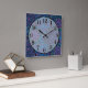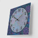 Horloge murale acrylique de 10,75 po x 10,75 po avec une image d'un beau design millefiori bleu, violet, rose et vert. Face d'horloge noire facile à lire sur cercle blanc transparent. Consultez la collection This & That Clock dans la section HOME.