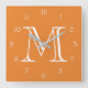 Monogram White Script Numbers On Orange Wall Clock Design © Trinets and Things 2017 - AHP Design La Réserve des Droits.
