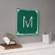 Horloge Carrée Monogramme de bordure clé grecque verte et blanche