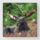 Horloge murale Carré d'orignal. Magnifique photo d'un orignal majestueux inclinant dans un champ de fleurs sauvages. Photo de Shivam Kumar.