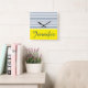 Motif rayé blanc, bleu et jaune moderne avec le nom fait sur commande