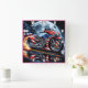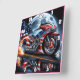 Une moto coutume frappante, peinte aux couleurs du drapeau américain, longe une route réfléchissante sous une pleine lune.