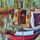 Un joli design artistique d'un bateau à étroit amarré dans une partie paisible du canal.