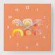 Horloge Carrée Orange arc-en-ciel art rétro mignon