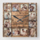 Horloge Carrée Photo Custom Collage Family Rustic Wooden Barl