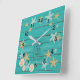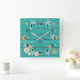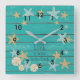 Personnalisez votre maison de séjour ou votre maison de vacances au décor côtier avec cette horloge murale à thème de plage rustique. Vous avez le choix entre un tour ou un carré. Imprimé avec un motif rustique en planches de bois arrière - plan aux accents bleu turquoise et étoile de mer. Modifiez le texte si vous le souhaitez. Voir beaucoup d'autres éléments de coordination dans cette collection "Beach Stripes and Starfish" à Camp_and_Cottage sur Zazzle.