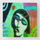 Horloge Carrée Portrait Abstrait funky d'une femme