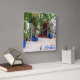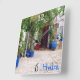 10.75" x 10.75" acrylic wall clock with image of a quaint courtyard of a home on the Saronic island of Hydra, Greece accented by bright blue pottery. See the entire Greece Clock collection in the HOME section.