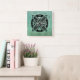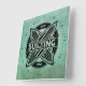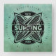 Style Badge surf graphic feds crossed surfboards and bold center surfing texte. Grund teal background