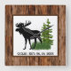 This rustic wall clock has a wood grain border with a moose silhouette in the center with woodsy trees and grasses. There is a space for your family name. Buy this clock for yourself ou give it as a housewarming venin ou another venin for him.