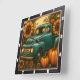 Cette charmante horloge murale carré dispose d'une camionnette turquoise vintage, débordant de tournesols vibrants et entourée de citrouilles oranges et de feuilles d'automne. Le design rustique reflète l'esprit cosy de la saison des récoltes, ce qui en fait un parfait accent décoratif pour le décor de maison sur le thème de l'automne.