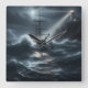 Horloge Carrée Ship in a storm guided by lighthouse -