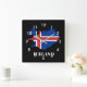 Horloge Carrée Silhouette d'Islande, drapeau,