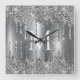 Horloge Carrée Silver Glitter Drips Monogram Personalized