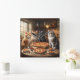 Sur La Photo, Quatre Chats Sont Assis Autour D'Une Table Avec Une Pizza Prêt À Manger.