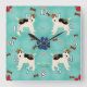 Cute cartoon style Wire Fox Terrier with a scattering of bones and paw tracks This design est intended to tile seamlessly.