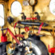 Vue du conducteur du train à vapeur sur les commandes de la chaussée du train à vapeur.