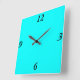 Belle horloge murale turquoise avec chiffres noirs simples. Couleur cool et numéros de cool sur une horloge pour un superbe look.