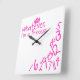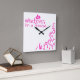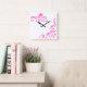 Drôle Quoi que je sois une horloge murale Princess. Blanc et Rose Chaud. Couronne rose avec des nombres en chute.
