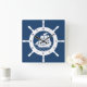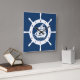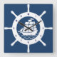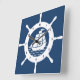 Le boat blanc nautical wheel with blue numbers with custom navy blue background.