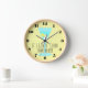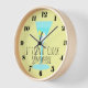 C'est Gin o'Clock Somewhere, écrit en lettres capitales modernes, sur une horloge à visage jaune et facile à voir les chiffres noirs, sous un dessin d'un verre à cocktail avec gin et tonique, glace et citron. Il est idéal pour un coin cuisine ou bar.