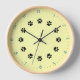 Black cat paw prints mark the five minute marks of the clock. Numéro et minute marks are en bleu. Ground de pale yellow.