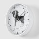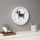 L'illustration originale en noir et blanc de Destei d'un mignon chien de race Beagle dessiné dans le style de lavage à l'encre numérique. La face de l'horloge est faite de simples lignes noires. Il y a aussi une zone de texte personnalisable qui se lit maintenant : "Beagle".