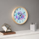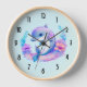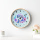 Une horloge avec une adorable illustration. Un dauphin bleu et violet entouré de jolies fleurs sous-marines colorées.
