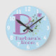 Horloge de la chambre de l'enfant. Horloge des enfants. Le design présente Monogram & Name avec Fleurs de chaque côté dans un style pastel couleur eau. Par exemple, le nom est Barbara. Changez le nom comme souhaité pour toute personne ayant un nom commençant par B.