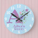 Horloge de la chambre de l'enfant. Horloge des enfants. Le design présente Monogram & Name avec Fleurs de chaque côté dans un style pastel couleur eau. Le nom d'exemple est Ailsa. Changez le nom comme souhaité pour toute personne ayant un nom commençant par A.